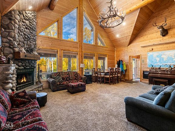 Cabin with incredible outdoor recreation facilities including, Bocce court, enchanting hot -tub, 18 hole mini putt putt course, disc golf, archery range, lighted volleyball court. All on 2 aspen filled lots (470/471) with stunning nearly 5400 SF log home with 2 master suites. The perfect setting for reunions, retreats, and FUN. Rainy days and Mondays will never be dull with an amazing array of arcade games plus theater room with surround sound. Hi tech gee whiz stuff too. 3-car garage.