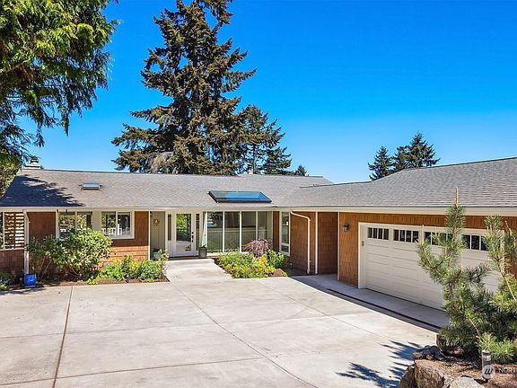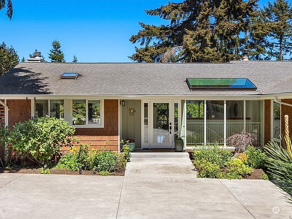 Enchanting rambler with captivating views of Puget Sound, Eagle Harbor, & Cascade Mts. awaits you! Located on a quiet cul-de-sac in desirable Bill Point, this charming home radiates all day sun w/floor-to-ceiling windows & skylights throughout! The seamless floorplan on the main level includes 2 br, 2 ba, including the primary ensuite with a sweet Juliet balcony. Lower level offers two addt'l flex rooms, full bath, & a spacious bonus room that flows out to the backyard w/beautiful gardens & lovely sitting areas. Indulge in the surrounding amenities of the community including Bill Point Pool & nearby Pritchard Park just outside your doorstep.Embrace a lifestyle of tranquility & convenience in this delightful abode offering endless enjoyment!