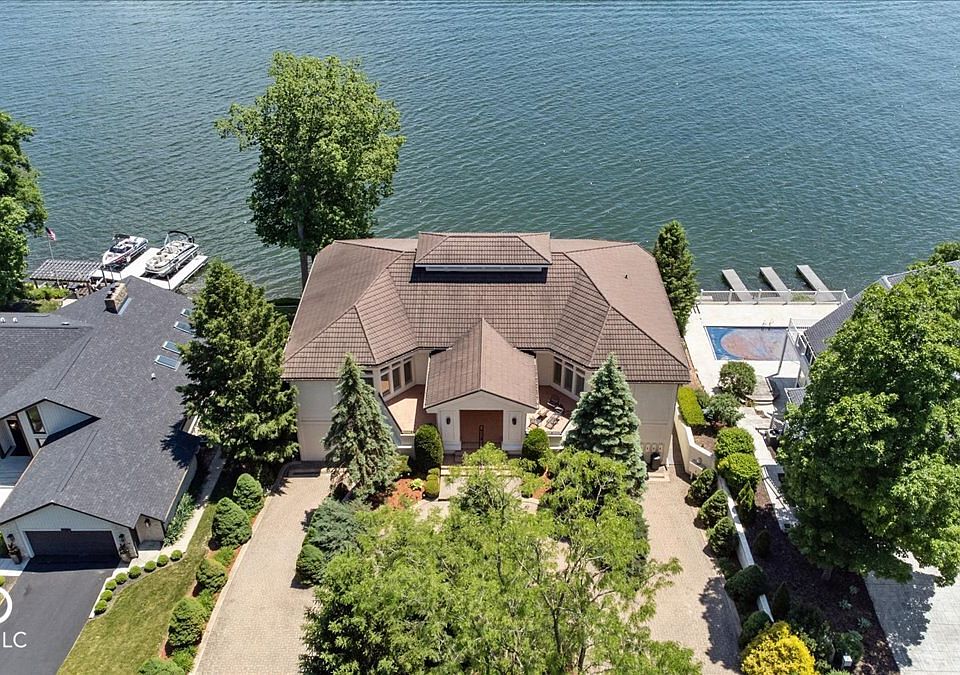 STUNNING Geist Waterfront Retreat on the MAIN BODY of Geist Reservoir. Perfectly positioned with over 100' of water frontage and sweeping PANORAMIC VIEWS on all 3 levels. Fantastic home for MULTI-GENERATIONAL Living! Inspired Scandinavian design, the home showcases a sophisticated blend of natural materials, a neutral palette, abundant natural light, clean lines, and thoughtful minimalism throughout. A striking custom circular staircase serves as a central architectural feature, seamlessly connecting each level of the home. Each level offers a distinct design featuring a main level living space, one of a kind kitchen, bar for entertaining, a fireplace and exterior balcony. The Main Level greets you with heightened ceilings and Frank Lloyd Wright inspired clerestory windows. Easily work from home in the 2-story library/office with built-in's. Let's not forget the ELEVATOR that transcends to each level. There are 4 bedrooms each fitted with their own en-suite and walk-in closet. Home also features a 4+ car garage with storage. Heated floors throughout. Designed to capture the best views Geist offers--this property is best appreciated in person.