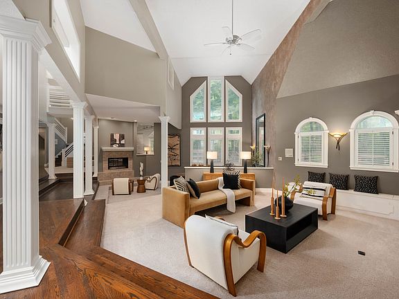 Two-sided gas fireplaceUpstairs loft areaCozy firepitSunken formal dining roomBuilt in banquetteSerene wooded oasisFlex room