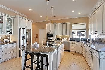 LAVISH LIVING!! This stunning home has lots to offer. Open floor plan starts with a grand foyer. Formal dining room and an oversized den with a wood burning fireplace. Windows across the back for natural lighting. A real chef's kitchen includes 42-inch custom cabinets, quartz counters, center island, cooktop, wall oven, and plenty of storage. Split floor plan with master bedroom to the back. Master bath with double sinks, garden tub, and separate shower. WATERFRONT VIEWS FROM YOUR PATIO!