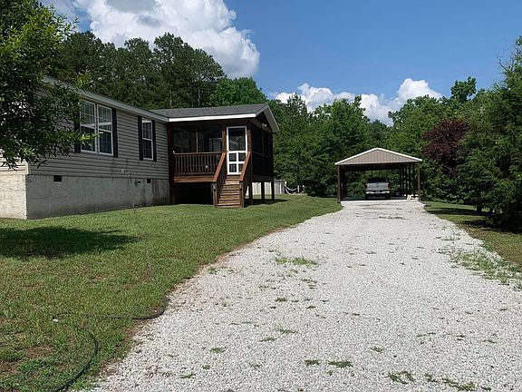 Private and secluded setting for this 1940 sq ft manufactured home sitting on 7.8 beautiful acres with a small pond. It is 1.4 miles to the lake, a marina, beach, and a newly built restaurant. It is a nice walk or you can drive your golf cart or ride bicycles. The home has 3 bedrooms and 2 1/2 bathrooms, a huge kitchen with plenty of cabinet space and a large island/bar. The living room has built ins and a gas log fireplace for those cool days where you really don’t want to turn the furnace on. There is a dinning room or den and another large family room. Two of the bedrooms share a jack n Jill bath while the master has a huge on suite and walk in closet. Out the front door you have a spacious screened in porch which is great for enjoying the scenery and all of the wildlife. There are two out buildings. One is 20x60 ft open sided with water and electric and the other is 22x30 ft enclosed with a 6x7 ft roll up door and a man door. It also has water and electric. They both have new concrete flooring. The inviting 24ft pool is three years old and the deck was installed last fall. It is a welcomed addition on those hot summer days. There is also a 4x6ft hunters stand on the back of the property. There is an abundance of wildlife in the area. There is a circle drive that allows for easy access with your boat or camper. An additional pull through drive was recently added for your RV. This house cannot be seen from the road. Well pump was replaced in the spring and there is a whole home filter system. Viewing by appointment only. Realtors are welcome.
