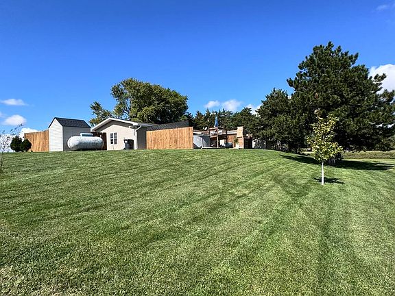 Beautiful and well-maintained 4-bedroom, 3-bath ranch home on the edge of Hebron, NE. The main floor offers 3 bedrooms, 2 full bathrooms, a spacious living room, dining area, kitchen with stainless steel appliances, and a laundry room with sink. The fully finished basement features a large family room with a cozy wood stove, 1 conforming and 1 non-conforming bedroom, a full bathroom, and ample storage space. Enjoy central heat and air (propane), on-demand water heater, water softener, and both city and private well water. Outside, you'll find a heated two-car attached garage, two storage sheds, underground sprinklers, a covered patio with stunning countryside views, a new outdoor fireplace, and an above-ground pool with privacy fencing. Recent updates include flooring, paint, bathroom upgrades, landscaping, and more. A move-in-ready home with modern comforts in a peaceful country setting.