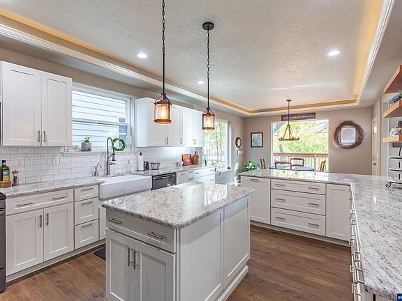 Gorgeous custom home with spectacular views of the S. Santiam River, enjoyable from various vantage points, including an expansive deck. Stunning open kitchen with gleaming granite countertops, island & black stainless steel appliances. The spacious great room boasts a cozy gas fireplace, while additional highlights include a bonus room, energy-efficient heat pump, tankless water heater, expansive driveway, RV pad, & access to river walking trails, all situated in the highly coveted Riverview neighborhood.