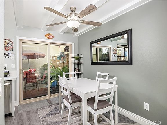 Beautifully upgraded end unit. The lower level has been recently remodeled with plush upgrades. Upgrades include a neutral color palette, vinyl flooring, LED recessed lighting, crown molding, dual-pane windows with plantation shutters, dual pane sliding glass door leading to private patio and garage access, kitchen with white shaker cabinets, soft closing drawers, stainless steel appliances and quartz countertops. Rounding out the lower level is a remodeled powder room and in-unit laundry. The upper level boasts 2 bedrooms and 1 full bathroom with dual vanities. Parking your cars is a breeze with a single-car garage and an assigned off-street parking spot. The sparking community pool and spa are a refreshment from the heat.