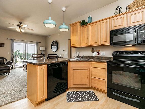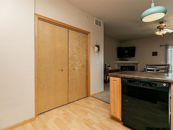 This 2nd floor Condo offers a view of the Blue Top Ridge Championship Golf Course at the Riverside Casino and has a Pond View. Built in 2008, features include: 2 bedrooms, 2 baths, ground level secured entrance with secured garage parking. Living room with gas fireplace open to the kitchen with breakfast bar and pantry. Spacious Deck to enjoy the view and seller added a bar table to the railing for entertaining. Maple Cabinetry in the Kitchen with laminate flooring. All appliances including the washer and dryer remain. Lots of entertainment options at the Casino, Gold Course, Spa, Golf Course and Restaurants. All within a short drive to Iowa City. HOA Dues are $150/month. Quick Possession is available!