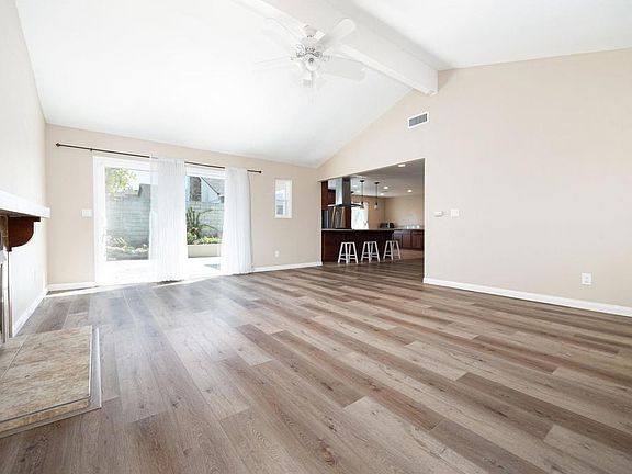 Mint condition single level home with stunning upgrades in very desirable neighborhood. Newer kitchen with custom cabinets, granite countertops, stainless steel appliances and recessed lighting. All wood floors throughout, large family room addition with fireplace and sliding doors to outside private patio areas. New windows and doors, upgraded baths, mirrored closet doors and central Heat and AC. Great open floorplan for entertaining. 2 car garage with laundry and storage cabinets for convenience.
