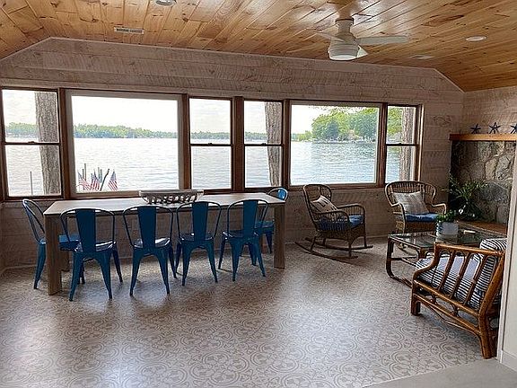 Waterfront ranch home on beautiful Eight Point Lake. Special property on the north shore, 150ft continual walk out sandy beach. 3 bed, 2 bath completely updated interior. New electrical, flooring, kitchen, appliances, bathroom. New shingle roof 2025. Willing to sell fully furnished, move-in ready. Gas fireplace. 2 car detached garage. New central air and furnace 2020 for year round usage. Dock included. Huge lot and yard, garden area, storage. Private drive.