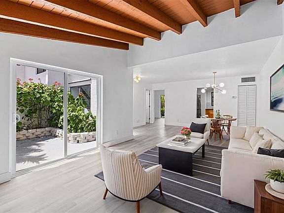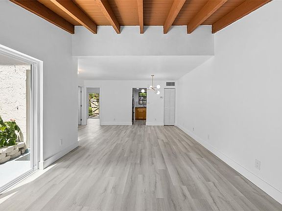 This is the move-in ready sanctuary you've been dreaming of. You'll be captivated by the freshly painted walls, brand-new vinyl floors, & the incredible wood beam ceilings that create a warm & inviting atmosphere. The kitchen boasts a gas stove & brand-new stainless steel appliances, all overlooking your private back patio. The primary suite features a spacious walk-in closet, & both bathrooms have been updated in 2025 w/ a sleek, spa-like design. This home has storm protection, a private front and back patio for outdoor living, & access to a pool, clubhouse, & tennis courts. All of this is situated in a secure, gated community w/ a low HOA fee. Located just minutes from highways, this pet-friendly townhouse can be rented immediately plus it’s close to parks & surrounded by A+ schools.