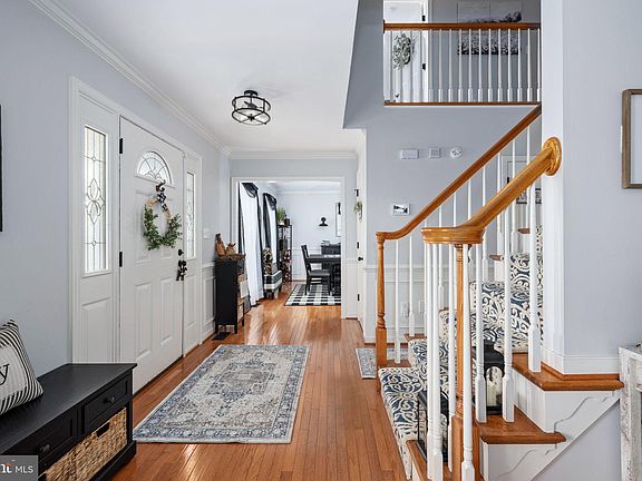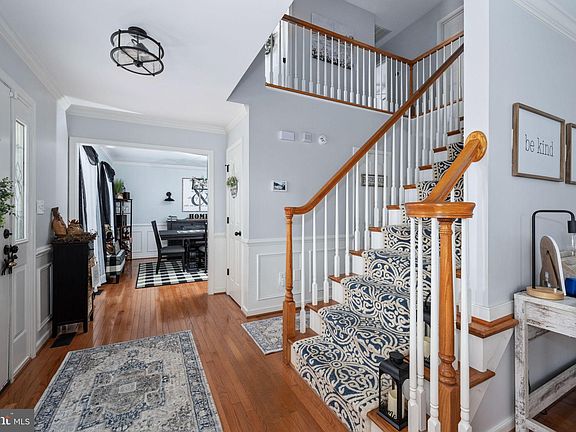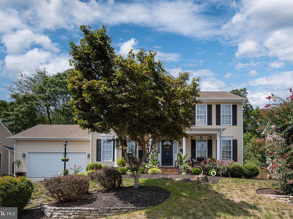 Gorgeous, upgrades have shaped this picturesque Fredericksburg residence into the coveted home of your dreams! Enviably set in the River Club neighborhood, this 4-bedroom, 3.5-bath Colonial-style haven is fronted by beautiful landscaping dotted with vibrant foliage and lush trees - further elevating its captivating curb appeal. Upon entering, discover a timelessly elegant interior showcasing high ceilings, soothing neutral tones, exquisite wainscoting, and brand-new hardwood flooring. Arched windows usher in brilliant sunlight to the living area, centered around an inviting fireplace flanked by display insets for your cherished keepsakes. A sophisticated farmhouse-style chandelier sets the mood for intimate celebrations in the dining room. Bright and open, the expansive kitchen sports stainless steel appliances, custom cabinetry, sleek quartz countertops, a pendant-lit island, and a breakfast nook. Newly installed carpeting cascades underfoot in the comfortable bedrooms, graced with ceiling fans and large closets. Generously proportioned, the primary suite features vaulted ceilings, a walk-in wardrobe, and a tastefully tiled ensuite with dual vanities and an oversized shower. Venture out to the sun-kissed deck ideal for secluded alfresco gatherings or the sprawling backyard with a gazebo and brick patio for leisurely activities. Other notables include a finished basement, a receiving area, a laundry room, an updated water heater and furnace, outdoor lights, and a power surge protector. Come make this gem yours while it’s still available!