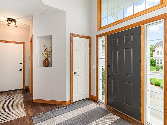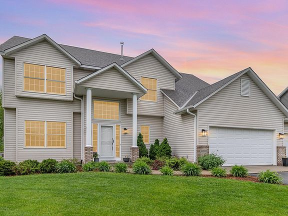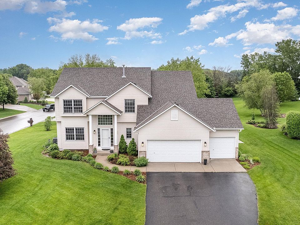 Highest & Best due 6/2 at 5:00pm. OPPORTUNITY KNOCKS! This beautiful four bedroom up two story is located on a cul-de-sac in the sought after Southern Lakes neighborhood surrounded by much more expensive homes. Greet your guests in the two story foyer with shiplap wall. The family chef will appreciate the kitchen remodel with quartz countertops, farm sink, newer stainless appliances ( range 2024) and easy maintenance LVP flooring. Entertaining will be a delight with the open concept design. Family room boasting a shiplap wall allows you to chat with the chef while also watching the game! Main floor powder room is updated with flair! Vaulted primary suite with a spacious walk in closet, full bath & separate shower. Remodeled upper bath with new LVP flooring. You will also appreciate the upper level laundry. Beautiful outdoor space with gorgeous paver patio, irrigation system and sport court in 2020. Finish the lower lev for another 800 sq ft. Stroll to the park. ISD 196!