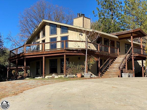 No HOA dues here. 3 bedroom, 3 bath, 2688 square foot, on 1.99 acres, built in 1981. Situated to capture sun sets from the great room, with wood burning stove for warmth and ambiance. Huge work shop/garage. Separate doll house like structure just awaiting ones imagination to be applied. Large lower level with full bath and laundry. Lots of storage under home. On GCSD water, no well to worry about. Handy man could make this home into a jewel. Good bones but needs face lift. Some remodeling done, hardwood floors throughout the main level. When Deck was rebuilt pressure treated wood was used for long life. Knotty pine ceiling in great room and master bedroom. Wood burning stove on both levels for warmth and ambiance. Some remodeling and upgrading will make this a wonderful retreat for years to come. About 2 miles to town of Groveland. Pine Mountain Lake is only a little further and offers stables, hiking, bicycling, camp grounds, and terrific 18-hole championship golf course plus country club for your dining and entertainment pleasure. Tuolumne County airport is close by for the pilots or those who want to be pilots. Yosemite National Park is just 23 miles down the road. Stanislaus National Forest is nearby which may become the home to an international quality mountain biking trail complex. Above the fog and below the snow describes our area. At the 3000 foot level of the Sierra Nevada foothills we enjoy a climate that is just about ideal. Winter temperatures are on a par with San Francisco and summer days are warm for the enjoyment of the outdoors and water sports, but at night the wind blows down from the mountains providing Mother Nature's air conditioning. Sleep with the windows open at night in the quiet solitude of a sparsely populated area. No Street lights to mar your view of the heavens, and yes, there really is a Milky Way. Activities and recreation abound in our area. Neighbors know who you are and say HI!