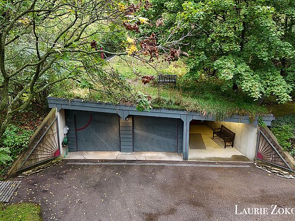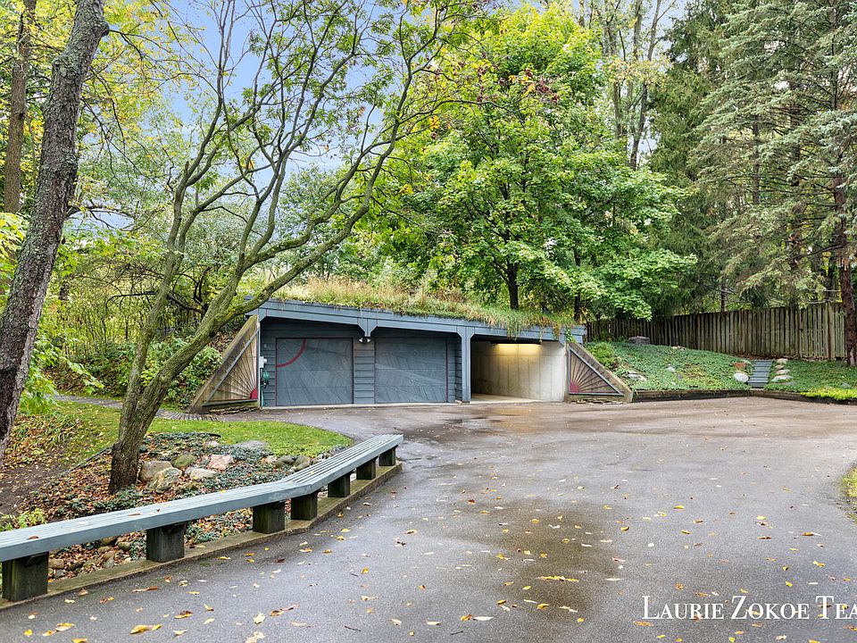 The ''Underhill: Custom designed, energy-efficient, and sustainable house/design studio built in 1978. It is a passive solar, earth-sheltered, green-roof building explicitly configured to the topography of the hillside site. It features a zero-step main floor, is all-electric, and utilizes 100% renewable power from Consumers Energy (through the Green Generation program, Solar Gardens, etc.). There is a Jotul wood stove in the great room for heating the house during power outages. The very private lot is 2.3 acres overlooking a large wetlands area. The upper living level is 1870 sq ft. There are four bedrooms (or three bedrooms and an office), one full bathroom, and two half bathrooms. All doors are 3'0'' wide for barrier-free access on the living level. The lower-level studio/workshop is 1600 sq ft. There is a 400 sq ft double-stall attached garage. The 3,100 sq ft ''tray system" green roof (vegetative roof) with a pond was installed 12 years ago. The original 1978 green roof lasted 35 years. The new roof vegetation is an intentionally biodiverse mixture of plant species. With the pond water feature, the roof environment was designated a National Wildlife Federation certified wildlife habitat in 2013. There is easy access to the roof and seating by the pond. The earth sheltered poured concrete walls vary in height depending on the direction they face. The north wall is 2 stories underground, sheltering the building from cold winter winds. The south wood frame glazed wall is two stories high, with the upper level offering sweeping views of the wetland from the 2nd floor. This large south-facing solar wall creates a considerable winter-time passive solar heating aperture for the upper living level windows and nighttime solar energy storage in a "Trombe Wall" on the lower office, studio, and shop level. With a 54" deep south overhang, the building is fully shaded in the summer, minimizing the need for air conditioning. The overhang has removable slats to maximize solar gain in the winter months. This also increases natural light penetration during the shorter winter days. The yard has no turf-type grass. All yard vegetation consists of natural weeds cut to various lengths and at varying frequencies, depending on the location on the heavily wooded hillside site. There is a 160 sq ft attached 3-season screen porch off the kitchen, connecting to a bridge leading to a 100 sq ft deck in the south woods.