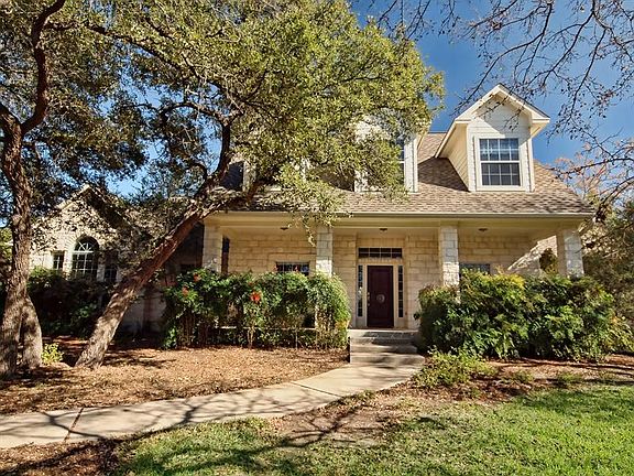 Custom white rock home on 3/4 of an acre. Master and guest room downstairs, and two BR;s and game room up. Three living areas: formal, large family room, and upstairs game room. Nice trees, level lot. Granite kitchen with tons of cabinets and counter tops...more storage than you can imagine! Covered front and back porches, 3 car side entry garage with extra parking. Large master suite with big bath. Nice large-lot subdivision with trail. Exemplary RR schools.