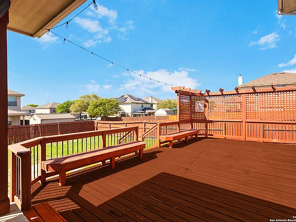 ***$5,000 (FHA) OR $2,000 (Conventional) Lender Credit towards closing costs available with Preferred Lender*** This corner-lot gem in Wildhorse has so much to love-and it's qualifies for NO DOWNPAYMENT! Located in the popular Northside ISD, this home welcomes you in with warm wood laminate flooring and a stunning floor-to-ceiling brick fireplace that makes the living room feel extra cozy. The backyard is made for relaxing or entertaining, with a large covered patio, extended decking, mature trees, and plenty of space to play or garden. Upstairs, you'll find all three bedrooms, including a spacious primary suite with room for a sitting area, a huge 12x10 walk-in closet, and a bathroom with double vanities, a soaking tub, and separate shower. There's also a large game room-perfect for movie nights, hobbies, or a home office. Extras like a water softener and corner-lot privacy make this home even better. Come take a look-you might just fall in love!