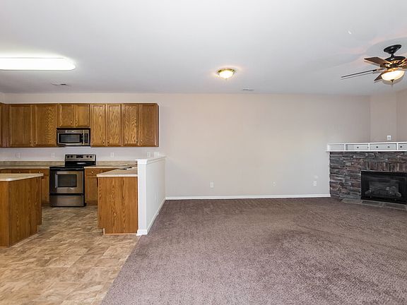 Lovely 1,716 square foot single family home is waiting for you. This 3-bedroom, 2-bathroom home features a great room with stone-accented fireplace to relax by, eat-in kitchen with island and breakfast bar and a master suite with walk-in closet along with a master bathroom with dual sinks, separate shower and tub. The exterior includes a patio in your fenced in backyard, great for entertaining and a two-car garage. Homes this well-maintained and move-in ready lease quickly. Schedule your tour and submit your application today. Utilities must be transferred into the resident's name.