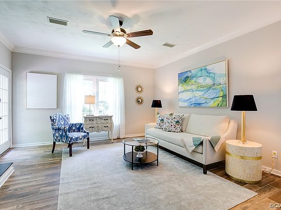 Welcome to this stunning 2-bedroom, 2.5-bath end unit townhome with a classic brick front. Step inside and be amazed by the tasteful upgrades throughout. The entire home has been freshly painted, including the walls and trim, creating a clean and pristine backdrop for your personal style. The modern and durable wood-grain tile flooring seamlessly ties the first floor living spaces together to create a cohesive atmosphere. The updated kitchen features painted grey cabinets, granite countertops, and stainless-steel appliances. Enjoy the convenience of a pass-through window to the dining area, allowing for easy interaction with guests when entertaining. The family room boasts a cozy ambiance with a fireplace that adds warmth and comfort. Crown molding throughout the 1st floor adds a touch of elegance. This townhome offers 2 bedroom suites, each with its own private bath. An attached shed and pull-down attic provide extra storage. You’ll appreciate the quiet neighborhood and the privacy of your deck. Convenient to Innsbrook and Short Pump, yet tucked away from the hustle and bustle. Don't miss the opportunity to make this move-in ready house your home.