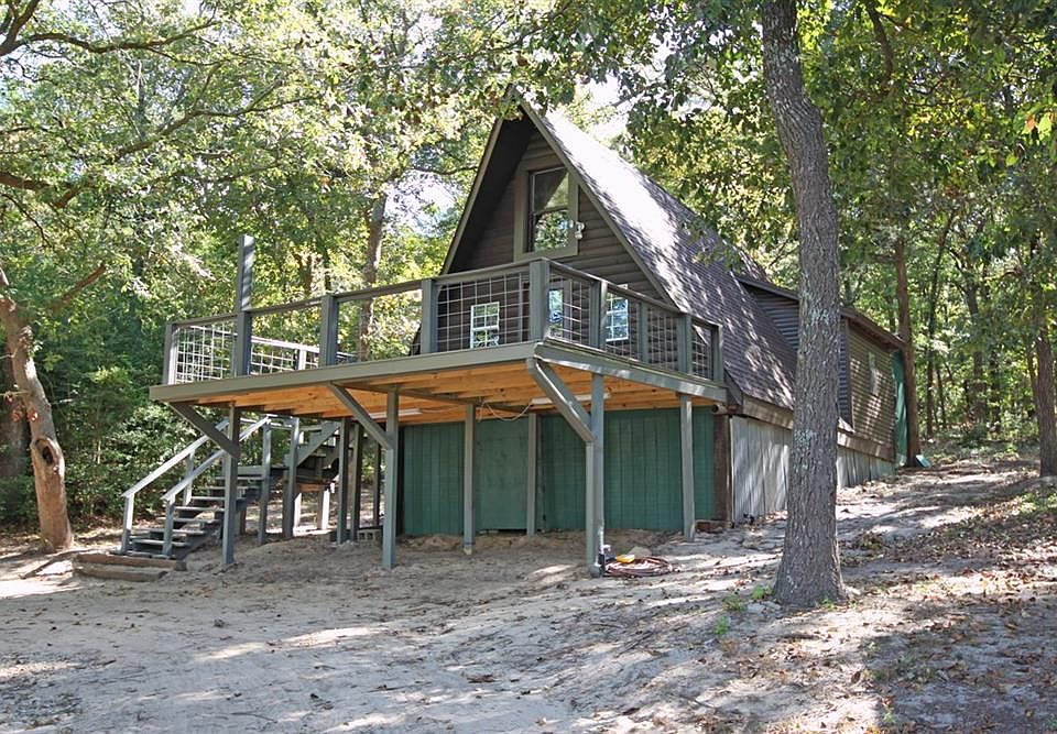 Rustic A-frame cabin on a private lake just north of Tyler! A secluded, peaceful retreat. Home is situated lakeside on 3 heavily wooded acres. Inside is a living & dining area, kitchen & bath; fridge conveys. Upstairs loft is used as a bedroom. Workshop is 28x24 feet with wiring for 220 volts & outlets for heavy woodworking. Keep 2 boats in the 6 yr old boathouse; constructed with heavy duty pilings using 50 yr treated mainrunners bolted through. Enjoy fishing in the stocked 17 acre lake! Included in the purchase of this home is access to 72 acres of common land that can be used for hiking, wildlife raising and viewing, limited hunting, and access to a shooting range. HVAC is 5 yrs old.