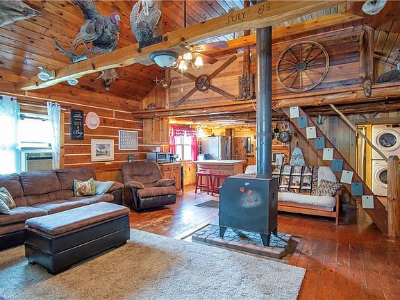 Secluded year round cabin on nearly 50 Acres!! Hiking trails throughout the property, wood shed, and 2 storage sheds. Updated kitchen, and laundry. Wood shed recently enclosed off back of kitchen for convince. 2nd loft bedroom added recently. DO NOT ENTER PROPERTY WITHOUT AN APPOINTMENT.