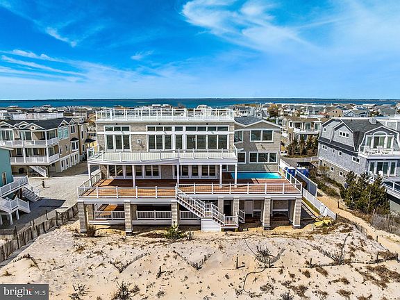 1093-C is a brand new oceanfront construction in North Beach on Long Beach Island. This expansive home features 8 bedrooms, 10 bathrooms, 3 living rooms, and a large in-deck pool overlooking the ocean. The generous footprint of the house allows for a design that takes advantage of the 100 feet of frontage, giving nearly every room in the home an oceanview or beach view. Multiple levels of decking, including a massive rooftop deck, provide stunning views of the ocean, bay, sunrise, and even the sunset. The finish list includes a chef's kitchen with paneled appliances, wood flooring throughout the home, extensive trim work, nu-cedar siding, pre-wiring for smart home technology, professionally selected tile, lighting and countertops, Ghroe and Toto fixtures, a multi-stop elevator, mahogany decking, 2 outdoor showers, and professional landscaping.