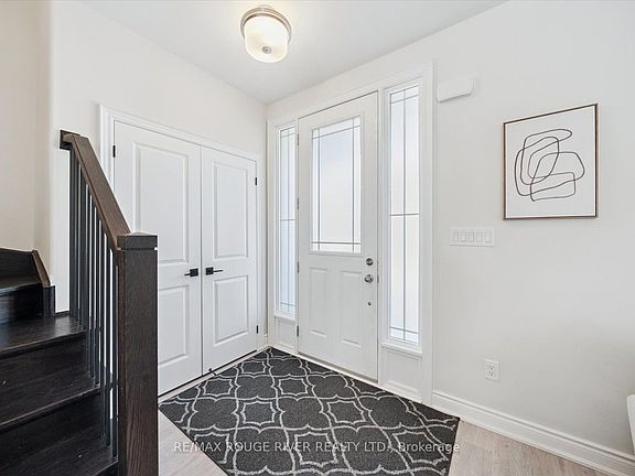 Welcome to 1093 Rippingale Trail, located in Peterborough's highly sought-after Northcrest community. This modern, all-brick, two-storey urban detached home was built in 2022 by award winning builder Mason Homes. Inside, the open-concept design blends style and functionality, creating a bright and inviting space perfect for both everyday living and entertaining. The gourmet kitchen features quartz countertops, sleek cabinetry, a stylish backsplash, premium black stainless steel appliances, and a generous island ideal for culinary enthusiasts. The adjoining living and dining area offer a versatile setting for hosting guests or enjoying cozy nights by the fireplace. Upstairs, you'll find three spacious bedrooms, including a bright and comfortable primary suite with a walk-in closet and private ensuite. Step outside to the low-maintenance yard complete with a newly built deck perfect for those seeking a manageable outdoor space without the upkeep. Additional highlights include main floor laundry with garage access, an unspoiled basement boasting upgraded high ceilings, above-grade egress windows, and a bathroom rough-in. With Easy Access to Trent University, Top-Rated Schools, Parks, Walking trails, Groceries & Restaurants. Parking for 4 vehicles, 2garage spaces + 2 driveway spaces, This home has it all!