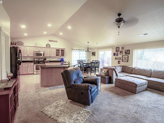 Open floorplan with vaulted living area. Large kitchen with island, granite counter tops, stainless appliances, and large pantry. Hardwood in kitchen and dining room. Sliding door and large windows open to back patio in large fenced yard with underground sprinklers and play area. Vaulted master suite with walk in closet. Utility room with additional storage leads to two car garage. Nice neighborhood. Built by Sierra Homes. Open Saturday 1/18 1:00-3:00