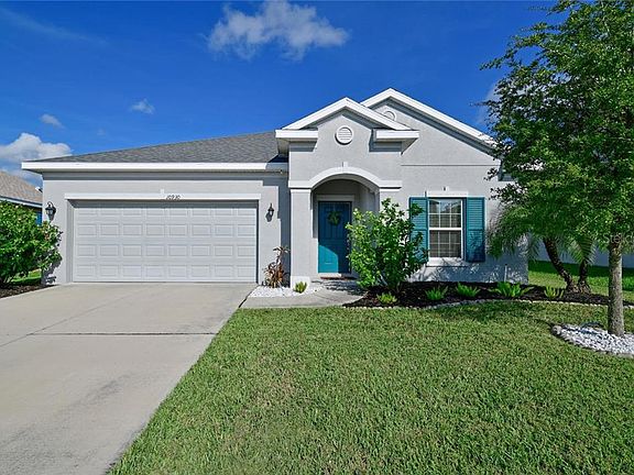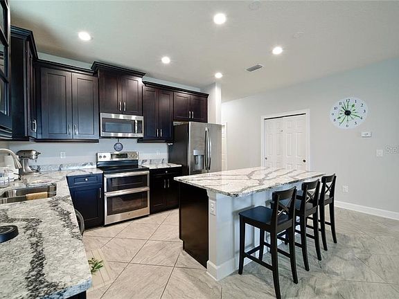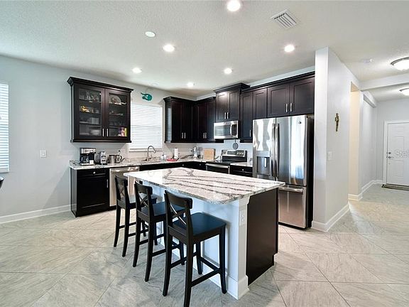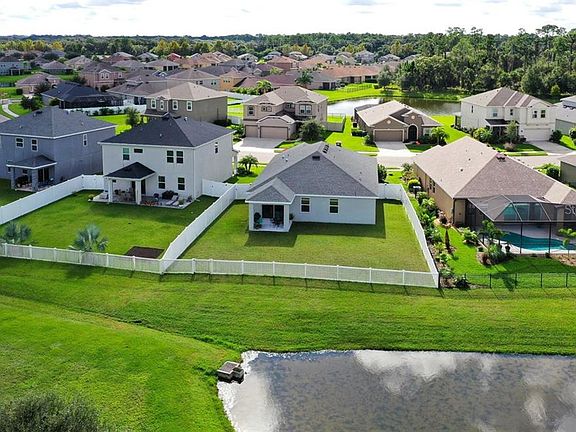 Situated lakeside in the desirable Copperstone community, this pristine 4 bedroom, 3 bathroom residence glistens with on trend colors and finishes offering comfort and privacy making for a perfect family home. Immediately entering the center of the residence, the breathtaking and well-appointed kitchen sets the tone as the heart of the home with the deep-colored 42" tall wood cabinetry paired with dazzling quartz countertops, stainless-steel appliances and sizable island with breakfast bar. The great room is generous in size and has views of the abundant fenced backyard. The floor-plan is open, light and bright with 3 guest bedrooms and 2 guest baths all with quartz countertops while the master suite is gracious with a walk-in closet and nicely appointed en-suite bath. The covered patio offers a serene place to enjoy a cup of coffee or iced tea overlooking the lake. A separate laundry room and utility sink in the garage makes chores a breeze. Behind the gated entrance, you will find an amenity-rich community offering a resort style pool, several play parks, clubhouse, fitness center and sport court. Copperstone is ideally located with close proximity to the new Parrish schools, shopping, dining and I-75 which allows for easy access to Tampa, St Pete, Brandon and the Sarasota area. The HOA fees include basic cable and internet.