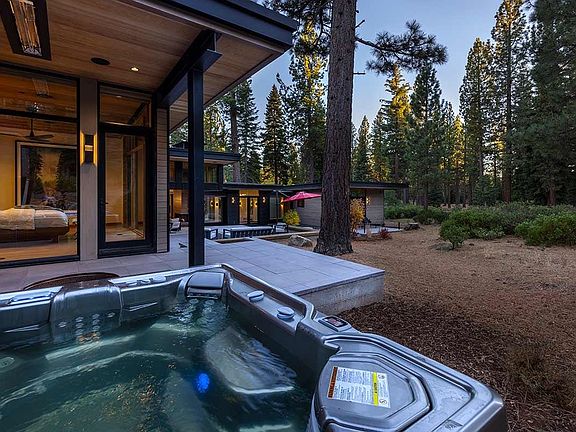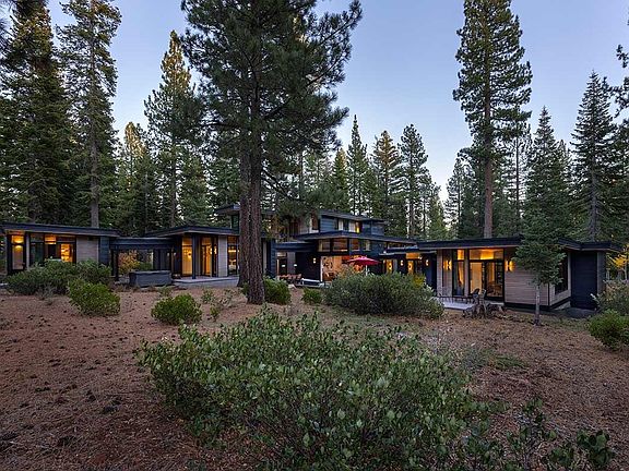 Neatly placed between a secluded cul-de-sac and – beyond its backyard – a national forest, this 5,960-square-foot Martis Camp home unfolds time and again to reveal one elegant surprise after another. It all starts at the front door, where glass walls offer a peek at what’s to come. That something is front and center immediately as an airy, spacious terrace is framed before you like a living work of art. A hallway to the left leads to a guest suite as well as a large kid’s playroom with 2 bunkbeds, play area and large screen TV. Stage right of the entry is the great room with its commanding fireplace and access to the terrace that, like the home itself, continues to amaze. This 6 bedroom, 6.5 bathroom home’s dining room and the kitchen with its large work counter are bookended by the southern sun and the lure of a patio and backyard that run up to the Tahoe National Forest and its circuit of community trails. The terrace is accessed from various points of the home, including the primary suite and the pocketing glass doors of the great room that disappear, creating an unfettered connection between the home and the patio. That terrace includes covered/heated dining space, built-in barbecue bay, a firepit and hot tub. Accessed by way of an outdoor breezeway is a separate office/suite space. There’s a bedroom beyond the kitchen, along with a media room and, up a few steps, a primary suite with access to the hot tub and covered/heated dining area of the main terrace. Further up those stairs is a cozy reading space and two bedrooms, one with with its own covered/heated deck that gazes off to the forest and that sense of calm that’s part of what led Links Magazine to state that “only one thing is more beautiful than visiting Martis Camp, and that is living there.”