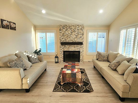 Welcome to this beautiful and charming single-story 4beds/2baths home offering large comfortable living space with separate living and family rooms. The home offers upgraded dual pane windows, plantation shutters, recessed lighting, crown molding, remodeled kitchen with granite counters, stainless appliance and white cabinets.