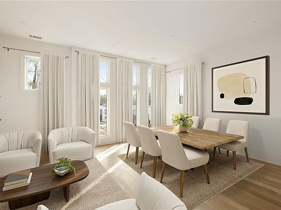 Located on Serenbe’s scenic Mado hillside, this home combines open floor plan living and dining with seamless access to outdoor enjoyment on the main level including a spacious courtyard, ideal for al fresco gatherings. On the second floor, the primary bedroom includes a private balcony overlooking views of treetops along with a comfortable guest bedroom and bathroom. The third floor offers another guest bedroom and a versatile loft space, perfect for a home office or craft room, making this home a blend of function and natural beauty.