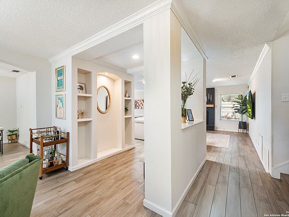 From the moment you turn onto this tree-lined street in Whispering Oaks, the charm of this 4-bedroom, 2-bath home stands out. Step inside to a freshly painted interior with all-new flooring and sunlight pouring through brand-new double-pane windows. The spacious living room welcomes you with gleaming wood floors, crown molding, and a cozy fireplace with gas logs. In the light-filled kitchen, you'll find a new stove, microwave, and reverse osmosis water system-just part of the thoughtful upgrades and improvements. Updated baths, wood beaded wainscoting, stunning fixtures, and custom built-ins in the bedrooms showcase the home's true craftsman finish. Out back, a spacious patio shaded by mature trees is perfect for relaxing or entertaining. An oversized lot, detached garage, and additional workshop add even more to love. All of this in a neighborhood that offers a pool, tennis courts, and park/playground-plus convenient access to all major highways, restaurants, and retail. This move-in ready home blends charm, updates, and location in one special package.