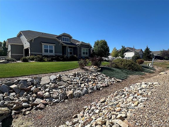Welcome home! Located in the highly desirable Todd Creek Riverside Neighborhood, is your dream home! Sitting on 1 beautifully landscaped acre, surrounded by open skies and mountain views, this lot also features a custom fire pit and builder installed water mitigation French drain. In the backyard, you can enjoy the sunrise or sunset under the patio addition and custom pergola.