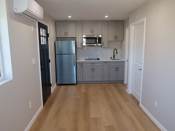 [Newly Built ADU] Welcome to your new home! This modern 1-bedroom, 1-bathroom ADU offers comfort and style. The open living area features abundant natural light and recessed lighting that creates a warm, inviting ambiance. The kitchen features brand-new appliances including a refrigerator, microwave, and electric cooktop paired with sleek countertops and cabinetry. The bedroom is bright with natural light and offers a built-in closet shelving to maximize storage. The bathroom exudes modern elegance with contemporary finishes and a glass shower door. The ADU features a secure gated entrance and an expansive patio, offering a private outdoor space. For year-round comfort, the ADU includes two mini split A/C and heating units. Utilities are simple: water is included, and electricity is paid by the tenant. While there is no in-unit washer, a convenient laundromat is just a block away. Located in a walkable neighborhood, you're just minutes from Target, Trader Joe's, Vons, and more. Whether you're starting fresh or looking for a charming space to call home, this unit offers comfort and a touch of luxury. Owner pays for water. Renter is responsible for electricity (set up through LADWP). Renter must arrange their own trash/recycling bins with LADWP. First month's rent and security deposit due at signing. Monthly rent due on the first of every month. Lease term is 12 months. Late fee of $100 if rent is more than five days late. Renter must report maintenance issues promptly. No alterations to property without landlord approval. Renter is responsible for maintaining cleanliness and general upkeep of the unit and patio. Landlord may enter with notice for maintenance, inspections, or emergencies. Routine inspections may occur every 4 months. No smoking allowed. No pets allowed. Street parking only.