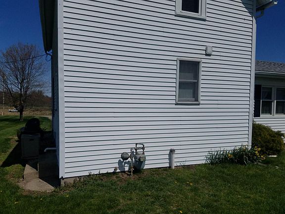 1,612 SF 2-3 bedroom home on approximately 3 acres. 1 1/2 story vinyl sided farmhouse with an oversized 26x36 2 1/2 car detached garage/shop. 74x36 classic bank barn and a livestock shed. Home has a newer gas furnace, central air conditioning, 4" well, updated wiring and plumbing, a modern kitchen, main floor laundry/mud room, covered front porch, updated windows, and partial basement. Upstairs landing could easily be used as a 3rd bedroom. Just minutes from town. This 3 acre parcel has not yet been split from the 80 acre mother parcel, so tax amounts are not yet determined.