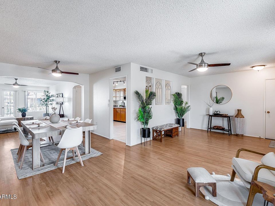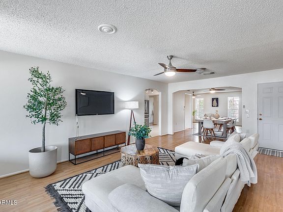 Experience the joy of outdoor living in your backyard space, complete with a covered patio and oversized backyard for growing your matured citrus trees, entertaining, or simply relaxing in the Arizona sunshine. The exterior has been meticulously adorned with trim and fresh paint, adding to the overall charm of this exquisite home.