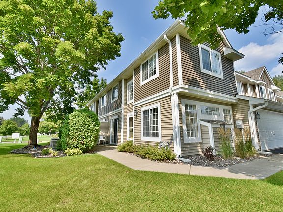 Look no further than this open floor plan and spacious feeling, end unit townhome, conveniently located in the heart of Champlin. A main level living room with bright windows, a dining room that walks out to a patio, for coffee or BBQ's, with a kitchen that hosts a breakfast bar and lots of cabinets and a walk in pantry for storage. The main level has a 1/2 bath just off the garage entrance for convenience. The upper level boasts of two spacious bedrooms. The primary has 2 closets, including a walk in closet and a walkthrough to a full bathroom with separate tub and walk in shower. A versatile loft (TV room, office, sitting area)and laundry closet, complete the upper level. Roof, siding and AC unit new in 2020. Nice sized, double tuck under garage for parking and extra storage. Close proximity to restaurants, shopping, schools and highways. A 7500.00 cash allowance to be given to the buyer upon closing for window repair and carpet replacement.