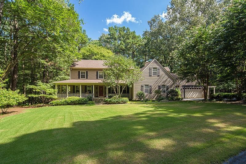Tucked away in a private wooded 5 acre setting with gated entry, this unassuming 4BR 4BA home w/wrap around porch takes comfortable living to the max. Impressive features & updates include fresh neutral paint thruout, new 16 seer heat pump/ac systems in 2022, new electric panels, & LED lights thruout the home. A Great Room with random width pine floors, massive stone FP, & bead board ceiling & walls creates an endearing space for relaxed living in the countryside. Additional high-lights incl gorgeous gourmet kitchen with stainless appliances, granite tops, & breakfast bar island, spacious Primary Bedroom w/11' coffered ceiling & spa-like MBA w/air jetted tub & walk-through shower, home office, & lrg upstairs media/playrm. Multiple decks grace the rear elevation - one w/new 6 seat hot tub in 2023. Other features - 2car garage + conditioned "decked out" 2-car garage with new polyruea floors & lots of metal cabinets. Awesome 12x10 storage cabin. Deer & wildlife love it here, U will too!