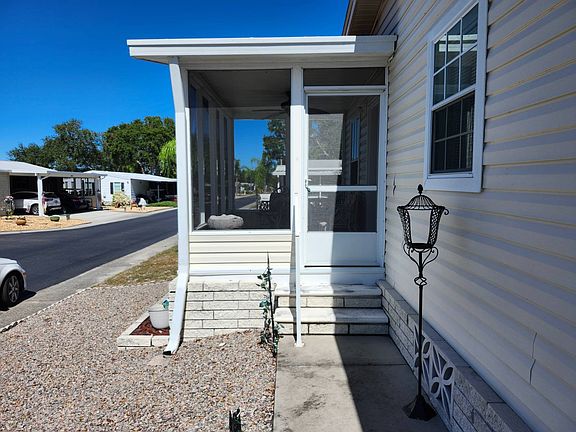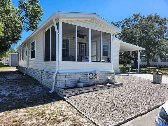 55+/2014/2BD2BA/1064SQ/ADDED CROWN MOLDING/UPDATED KITCHEN, BATHS, INTERIOR WALLS/2 SCREEN LANIA'S You don't want to miss this one, it is only 11 years old but the interior has been updated, throughout from removing the strips and drywall finishing to all new baths and updated kitchen you will fall in love with this little cutie! Located in the much desired 55+ community Hacienda Heights offering daily senior activities, a year round heated swimming pool, Hot Tub, shuffleboard, horseshoes, billiards and a full clubhouse with full kitchen, large entertainment room and a library. Hacienda Heights offers all this for the extremely reasonable park fee of $625.00 per month includes all amenities, and trash pickup at your home twice weekly. This home has two screen lanai's one on the front of the home overlooking the street and the other off the back of the drive in front of the storage shed. Entering this home on the side entrance brings you into this wide open concept with the dining on the right and the Center Island kitchen complete with overhead track lighting on the left and the wide open living room across the back you absolutely wont be alone entertaining in this floor plan. The front screened lanai off the front is 8x12 and overlooks the street for that social in you, with the side lanai much more private measuring 12x14 there is plenty of room to hang out. The 8x12 storage shed is located off the side lanai and is accessed from inside the lanai. The laundry inside and tucked away into a closet area off the dining, near the hall behind bi-fold doors. The main bath remodeled is just across from the laundry and just off the bedrooms offers an updated vanity and the full tub/shower combination unit. The guest bedroom full sized and offers a standard will closet with the master an en-suite also updated and offers the walk-in style shower and a standard wall closet. Hurry this home is like new inside and offers dual screen lanai's and many upgrades. Make your appointment to see today!