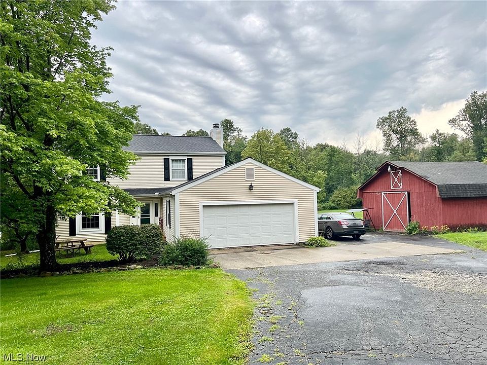 BOM no fault of it's own. Large 4 bedrooms, 2-1/2 bath colonial on 1.88 acres in the Chardon School District. Sunroom with hardwood floors & skylights. NEW SEPTIC to be installed 3rd week of November. All bedrooms are up, upstairs is carpeted, both upstairs baths have vinyl flooring. Lower level has glass block windows. Barn on the property is great for storage! Newer updates include; Bryant gas furnace, septic pump. New roof in 2023. Wood burning fireplace in family room. Large barn on property has plenty of storage. Home has been well maintained and is move in ready. Play equipment to stay.