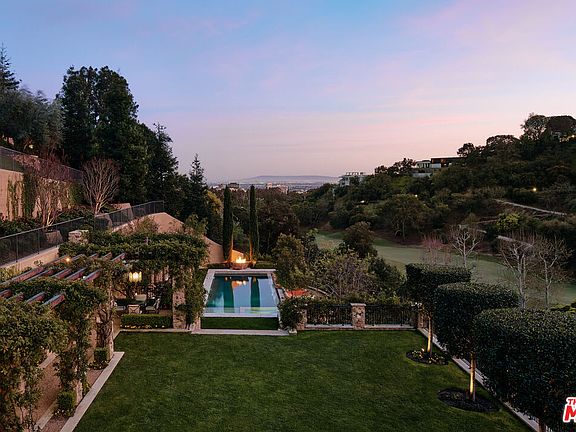 Welcome to Villa Del Amor, the epitome of luxurious living in a custom European villa nestled in the prestigious enclave of Lower Bel Air. Hovering over the esteemed Bel Air Country Club Golf Course, this remarkable residence offers unparalleled privacy and exclusivity. Crafted with meticulous attention to detail, this exceptional estate boasts the finest materials and craftsmanship, showcasing exquisite European-inspired architecture. From its grand facades adorned with intricate stone work to its expansive interiors with soaring ceilings, every aspect of this home exudes opulence and sophistication. Spanning across a sprawling lot, the property enjoys sweeping views of the lush fairways and beyond, creating a serene and picturesque setting. The meticulously landscaped grounds feature manicured gardens, tranquil pathways, and a resort-style pool area, offering a perfect blend of tranquility and outdoor entertainment. Step inside to discover a world of elegance and grandeur, with spacious living areas designed for both lavish entertaining and intimate gatherings. The gourmet kitchen, outfitted with top-of-the-line appliances and custom cabinetry, is a chef's dream, while the formal dining room provides a refined space for hosting memorable dinners. Retreat to the sumptuous master suite, complete with a luxurious bathroom and private terrace and spa overlooking the golf course. Additional bedrooms and amenities, including a private study, media room, and fitness center, ensure every comfort and convenience is catered to. With its idyllic location, impeccable craftsmanship, and unparalleled amenities, this European masterpiece offers a rare opportunity to experience the ultimate luxury living in the heart of Bel Air.