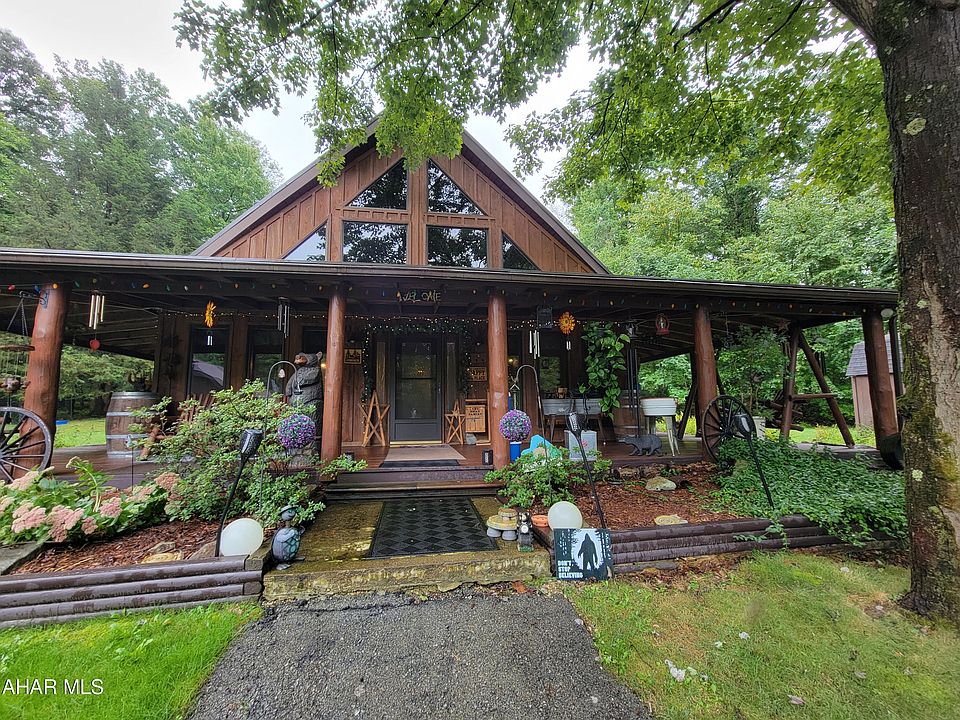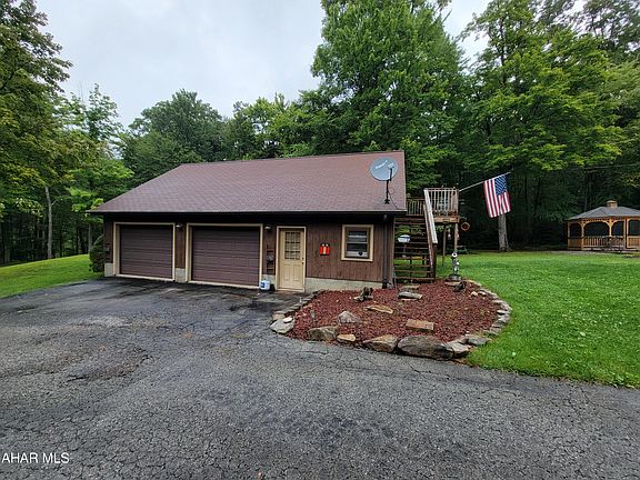Country living at it's best! This Cedar home has so much for you to enjoy. The beauty inside and out will make you feel peaceful and right at home. This 2 BR, 2 Bath home in the woods with: a 2nd floor deck, rustic porch, 2 car garage, workshop, Man-cave over garage (has a vault door), a screened gazebo, picnic table area, 2 sheds, and landscaped yard makes you feel like you are coming home to your personal retreat-get a way! Take in the fall colors while sharing time around a fire in the 'Fire-Pit' area. Inside is new carpeting. The exterior was professionally cleaned in 2021, 2 new Mini-splits (2022) offer AC and additional heat source. The gravity fed oil stove is very heat efficient. New Leaf filter gutter guards added. Satellite used is Viasat great reception and fast speed.