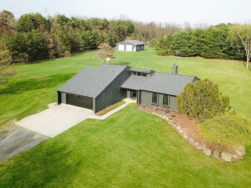 Rich in beauty, over 10 tree-lined acres. Newly renovated luxe contemporary home is supremely stylish yet comfortably chic tempting your senses for so much fun and enjoyment! 3 beds possible 4 with the loft/flex room, 2.1 baths, new natural tongue & groove ceilings, cozy family room with pellet stove, full walkout basement with new glass garage door (access to pull a car in for storage), huge deck the entire length of home great for entertaining, 2.5 car att. garage as well as a pole barn (40x40 with 12’ walls), wired for welding 240 voltage, running water, will come with an extension cord for a generator, two garage door openers with remote, roof was replaced in 2017 and cable TV. Bring your toys and/or animals!