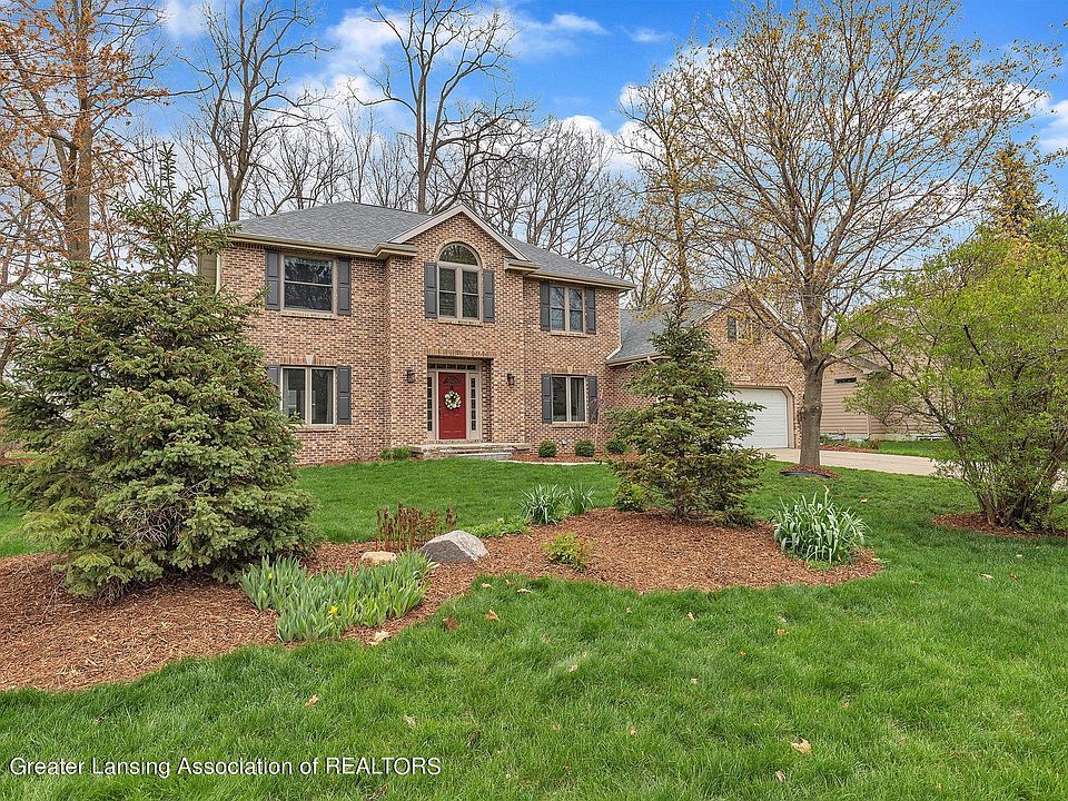 Welcome to 1094 Buckingham Road. This well-maintained home is located in the beautiful Chippewa Woods sub and the award-winning Haslett school district. Impressive from the curb, it rests on 1/3-acre lot with mature trees, plenty of green space, and updated landscaping (2019). Newer exterior updates include roof (2019), AC unit, fascia, gutters, and drain spouts (2014). Step inside where the spacious first floor offers an updated stone-hearth gas fireplace (2019), built-in bookshelves, two living spaces, sliding glass door that leads to a newly painted deck, eat-in kitchen, pantry, dedicated laundry room, and a formal dining room. Upstairs features an owner suite with a newly renovated bathroom (2021) and walk-in closet with three additional bedrooms and additional full bath. The upper level has all new Renewal by Anderson energy efficient windows (2020). This home has a partially finished basement with a half-bath, new battery back-up sump pump (2018), and plenty of storage.