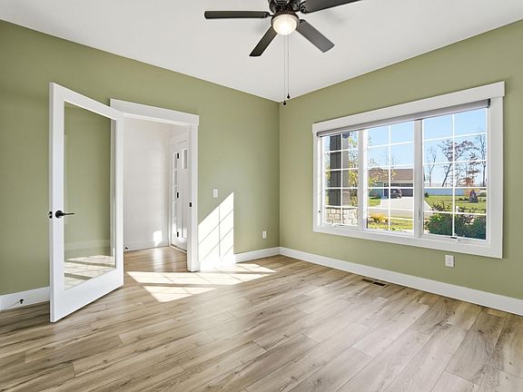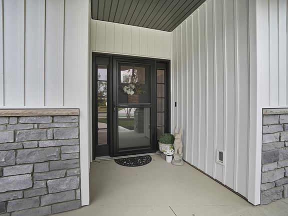 ** Motivated Seller! ** Welcome to this immaculate split-bedroom ranch in the desirable Ridgewood (NWACS). With striking curb appeal, a beautifully landscaped lawn, and a charming front porch, this home invites you in. The fenced backyard, bordered by a tree-lined lot, offers serene pond views from the screened porch—perfect for peaceful relaxation. This open-concept floorplan features superior craftsmanship. The 18’ x 16’ Great Room, filled with natural light, showcases a stone fireplace and flows into the gourmet kitchen and dining area. The kitchen boasts ceiling-high White Maple cabinetry with soft-close glass-front doors, Quartz countertops, a white subway tile backsplash, stainless steel appliances, and a large walk-in pantry. The private master ensuite is an owners retreat with a tray ceiling, double sinks, ADA-compliant features, a custom porcelain tile walk-in shower, a linen closet, and a two-story closet with custom shelving. Two additional bedrooms with walk-in closets and custom shelving share a main bathroom with a shower/tub combo. A flex room near the entry is ideal for a den or office. Ample storage includes a spacious laundry room with a sink, counter, and cabinetry, a nearby storage closet, and a three-car garage with a floored attic and epoxy-finished floors. The mudroom off the garage provides exceptional storage solutions. The Great Room and screened porch are wired for surround sound, with the porch easily convertible to a three-season room. This meticulously maintained home blends modern elegance with tranquil surroundings. Over $30,000 in upgrades enhance this home, including custom lighting, ceiling fans, custom window treatments, Roman shades, epoxy-finished garage, patio, landscaping, black iron fence, and porch floors, a water softener, furnace humidifier, custom glass shower door, and exterior down lights.