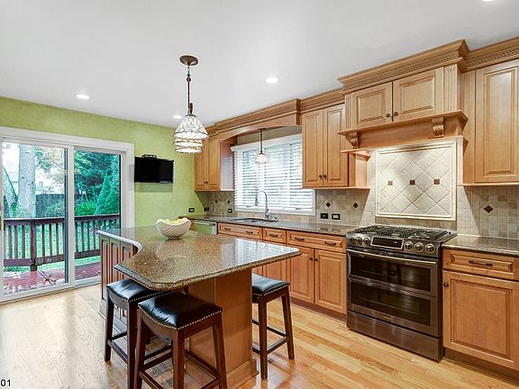Welcome to this bright, airy & tastefully updated 4 Bedroom, 2 Bath home situated on a spacious landscaped property. Enter into the foyer adjacent to the family room with a gorgeous stone fireplace. The eat in kitchen has access to a formal dining room & deck overlooking the back yard with a fish pond. Also downstairs is another room off the family room that can be used as you wish, a bfast nook, den, sitting room so many options. Four bedrooms include a large master w an ensuite sitting room. One of the bedrooms is on the first floor and perfect for guests with full bath on that floor. Finished recreation room in basement. Sprinkler system! Upgrades past year~New full bath, upstairs floors, closets, refrig, oven, stairs to bsmt, doors, moldings, skylight, blinds & dining room. Nothing to do but move in!