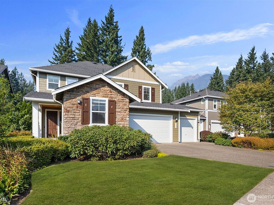 Set on one of Cedar Fall’s premier lots, welcome to a special home offering privacy, mountain views, and a backyard retreat rarely found in the neighborhood. Light-filled interiors feature walls of windows, soaring ceilings, a gas fireplace, and central A/C. The chef’s kitchen with island and dining area opens to the backyard. A main-floor guest suite with bath adds flexibility, while upstairs the primary suite includes dual closets and a spa-like 5-piece bath. The rare 820sqft 3-car garage boasts epoxy floors and high-end custom storage. Enjoy a fully fenced yard, mature landscaping, and a Tough Shed for added utility. Steps to the community playground and minutes to DT North Bend with easy freeway access. Turn-key and truly a must-see!