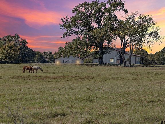 Over 70' elevation changes in this very diversified Ranch and Hunting Property and with over 228 ag exempt acres! Starting on the front of this unique property with custom *FULLY FURNISHED* BARNDO that contains very nice custom spacious living quarters and offers a bonus of 2 additional sleeping quarters with a bathroom & shower upstairs. Also, a 2nd furnished sitting area (with bar, TV & shuffleboard table) in the shop for entertaining and enjoyment, the remainder of the shop has 3-12' rollup doors and plenty of space for RV parking, equipment or great working area. There are covered porches to sit and relax looking over a 4 acre lake (covered pier) and over 50 acres of improved meadows surrounding the house with scattered Oaks and rolling hills, a 40x40 custom built horse stable with 3 priefert stalls, horse runs, wash rack, tack room and a bathroom provide a first class horse facility. There is another barn near the front that offers a place for hay and equipment storage. This area is fenced and cross fenced. The middle section of this property offers rolling hardwood, cedar and natural growth that has several scattered openings that are good for some additional grazing or the perfect place for food plots and wildlife management area. There are several seasonal natural water spots that would make some great managed duck sloughs. The back of the property is a hunters paradise with Greenwood Creek and Big Creek crossing the property and providing some of the best hunting in East Texas. This property is one that covers it all from weekend getaway, hunting property, livestock facility, corporate retreat, recreational use or the future site of that new custom home. Located only 1 mile from I30 (with good roads), only 17 miles from Sulphur Springs, 5 miles from Mt Vernon and only 90 min. from DFW area provides quick and easy access to this great retreat. Property is bordered by larger ranches to minimize the encroachment and provide privacy while hunting & enjoying.