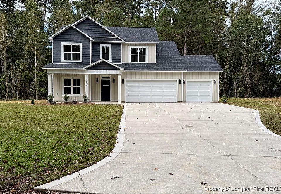 Welcome to The Grey Plan—a thoughtfully designed home nestled on a generous 1.49-acre lot in peaceful Linden. This beautifully crafted home features the ideal layout with the primary suite on the main level, three additional bedrooms and bonus room upstairs, providing comfort, privacy, and functionality for the whole family. The main level spacious primary suite is a true retreat, boasting a tiled walk-in shower, dual vanities, a private water closet, linen storage, and a gracious walk-in closet. The heart of the home is the open-concept kitchen, complete with granite countertops, stainless steel appliances, and a center island that flows effortlessly into the dining and family rooms—perfect for entertaining and everyday living. Just off the entry, you’ll find a versatile office or flex space—ideal for working from home, a hobby room, dining area, or a quiet study. Upstairs, an additional living area between the bedrooms creates the perfect spot for a reading nook, playroom, or gaming lounge, all serviced by a full bathroom for added convenience. Enjoy your morning coffee or evening relaxation on the covered front and back porches while taking in the beauty of your expansive yard. Plenty of room to grow with a third car garage for extra storage! With no HOA, you’ll enjoy the freedom to truly make this home your own. Take advantage of a 1% lender credit on the loan amount when using preferred lender Christy Strickland with Atlantic Bay Mortgage (910-574-2105). Please note: Listing photos are from a previous build with the same floor plan and are for representation purposes only.