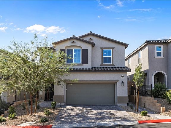 Welcome to this stunning two-story home in the desirable Skye Hills community of Northwest Las Vegas! Built in 2022, this 5 bedroom, 4 bath residence offers over 2,700 sq. ft. of modern living with thoughtful upgrades throughout. The open concept floor plan features a bright kitchen with quartz countertops, a large island, stainless steel appliances, and plenty of storage. Perfect for both entertaining and everyday living. The spacious primary suite includes a spa like bathroom with dual sinks and a generous walk-in closet. A first-floor bedroom with full bath provides flexibility for guests or multi-gen living. Enjoy a low maintenance backyard with covered patio- ideal for relaxing evenings or weekend gatherings. Located in a gated neighborhood with parks, walking paths, and easy access to shopping, dining, and the 215 freeway, this home combines comfort, convenience, and community. Don't miss the chance to own this move-in ready gem!