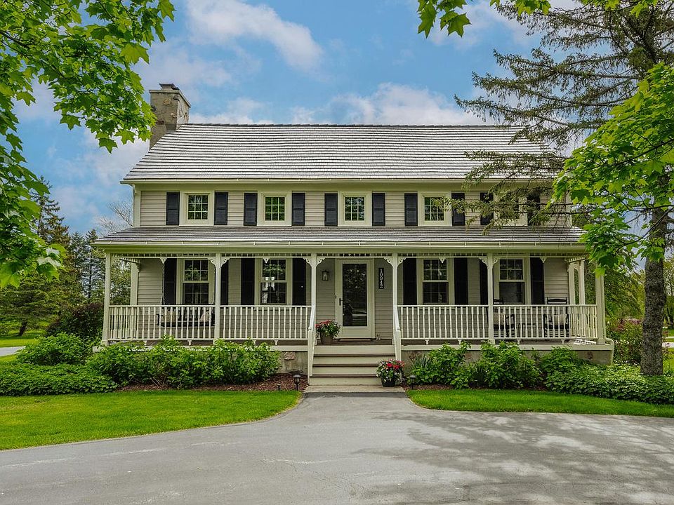 Welcoming front porch is the invitation to this updated historic house in desirable Gebhardt Farms! Reclaimed wide plank wood floors throughout this gem. Living room boasts, reclaimed barn beams, stone natural fireplace & wet bar. Enjoy spacious dining room w/leaded transom windows & a door leading to side yard. Pristine kitchen has durable silestone counters & stainless steel appliances. Main floor also features, den/office w/bay window, laundry room & updated powder room. Primary suite along w/ 2 other bedrooms & updated baths complete the 2nd floor. The large lower family room w/custom built-ins adds even more value. Relax on almost 3/4 of an acre of professionally landscaped yard w/a deck. New roof('22), exterior paint('23) & many more updates! This is THE quintessential farmhouse!